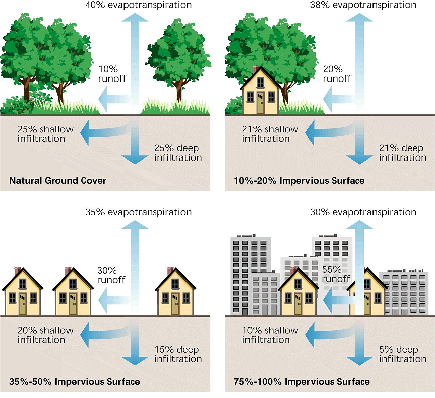 Para reduzir os impactos das cidades sobre o ciclo hidrológico são necessárias medidas que favoreçam a infiltração da água no solo, a evapotranspiração, a retenção das águas da chuva e reduzam o escoamento superficial (veja o post MANEJO SUSTENTÁVEL E CONTROLE NA FONTE e PLANO SUSTENTÁVEL DE MANEJO DE ÁGUAS PLUVIAIS). No post MANEJO DE ÁGUAS PLUVIAIS: QUEM ESTÁ INOVANDO NA ÁREA?, Osvaldo apresentou centros de pesquisa no exterior que têm buscado soluções para a redução dos impactos da ação antrópica. Aqui na UFRJ, a AquaFluxus participa de pesquisas nessa área e já participamos de projetos no exterior, dentro dessa temática (acesse aqui e aqui para conhecer o projeto).